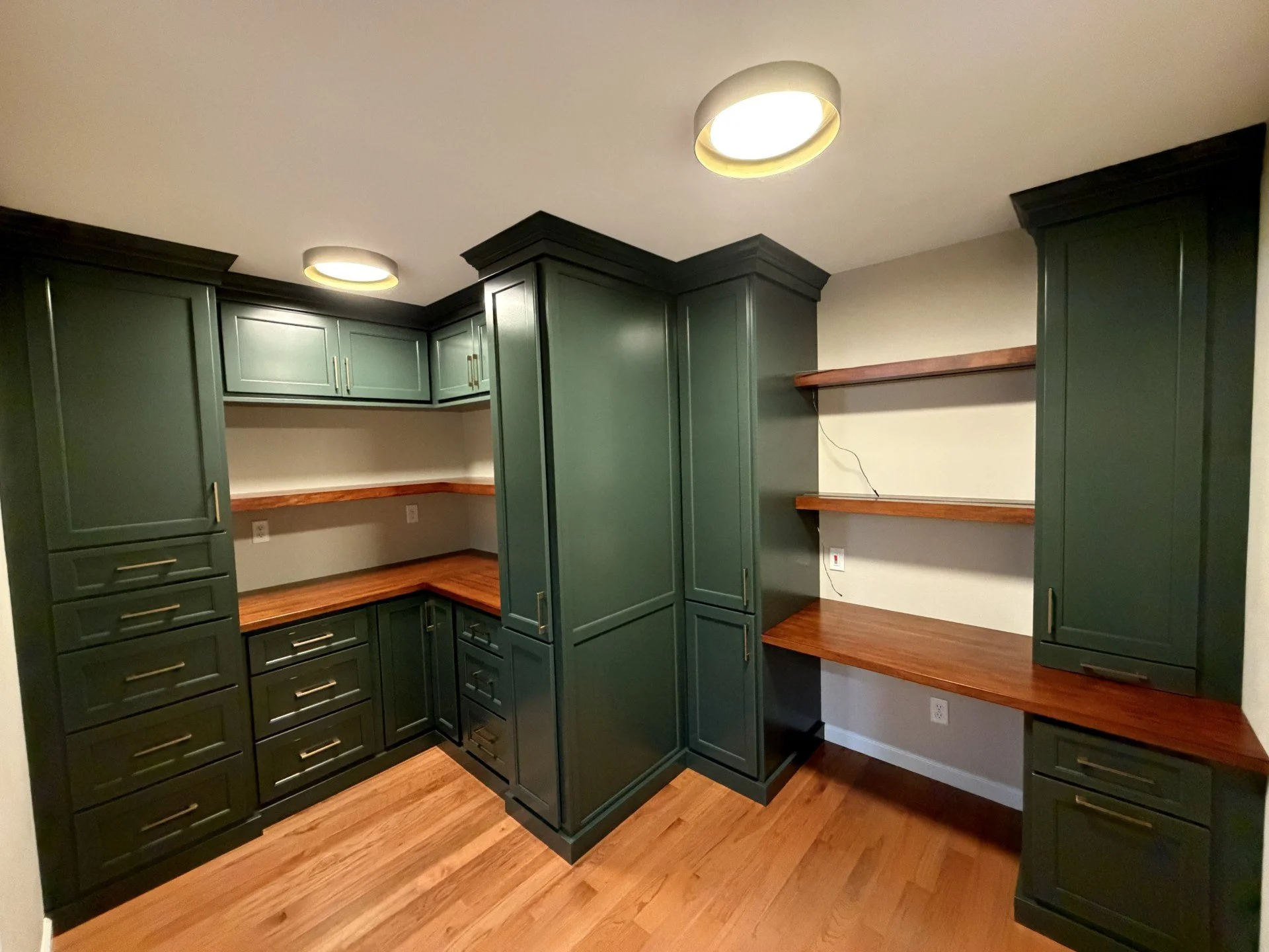 This project began as two separate rooms adjacent to the kitchen—an office and a pantry. The pantry’s original doorway to the kitchen was closed, and access was redirected through the existing office, resulting in a seamless design that allows the pantry to flow effortlessly into the office space.